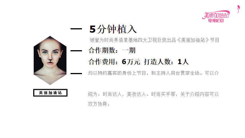 《美麗加油站》是一檔具有國(guó)際化性質(zhì)的生活服務(wù)類(lèi)高端時(shí)尚節(jié)目。節(jié)目每一期一個(gè)時(shí)尚主題,邀請(qǐng)知名演員,設(shè)計(jì)師,時(shí)尚達(dá)人,著名護(hù)膚美容師及網(wǎng)紅等和主持人共同探討,分享。。。