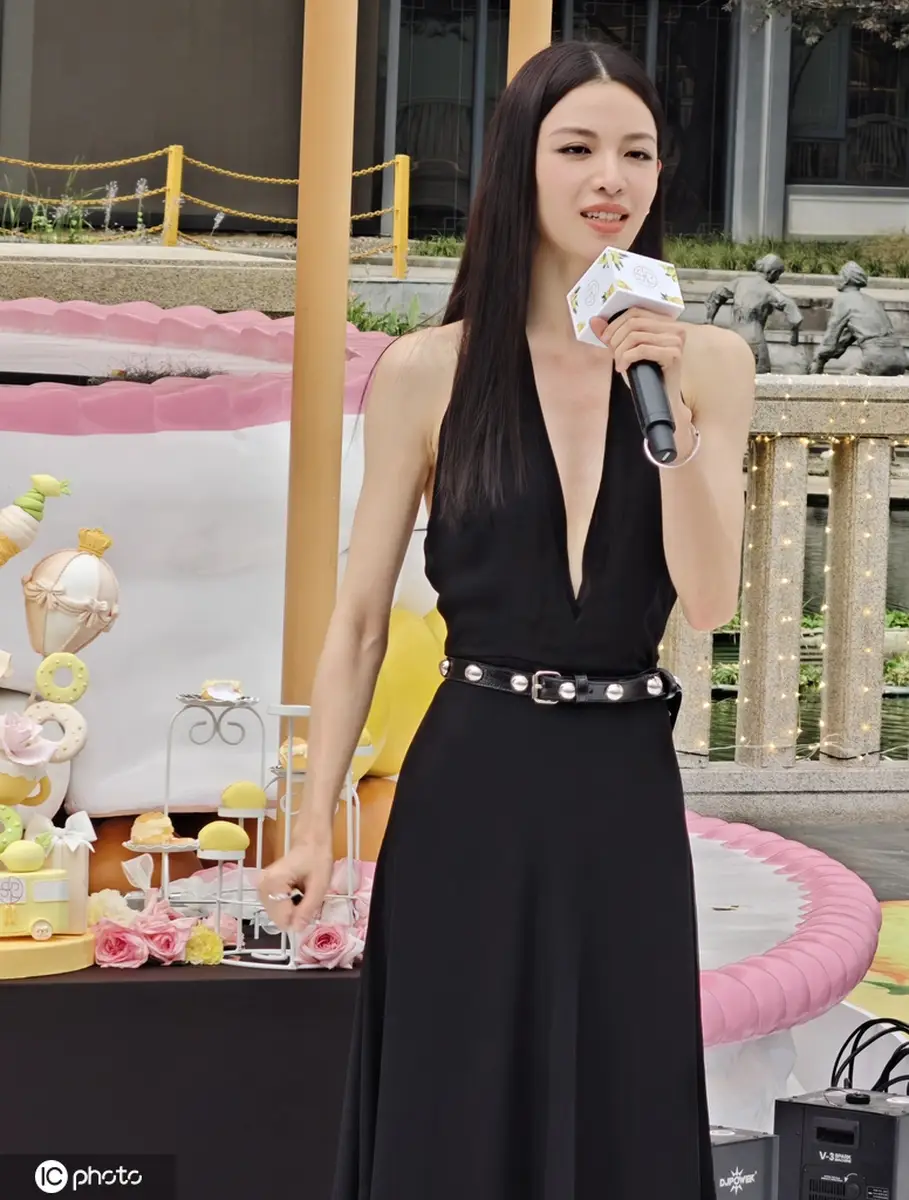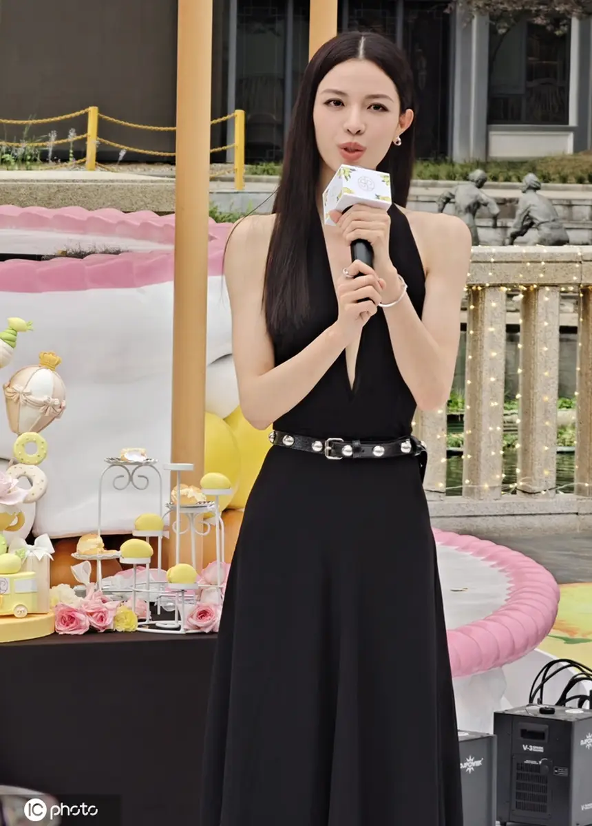 鐘楚曦出席武漢SKP一周年慶典活動(dòng) 黑色深V長(zhǎng)裙時(shí)尚大氣