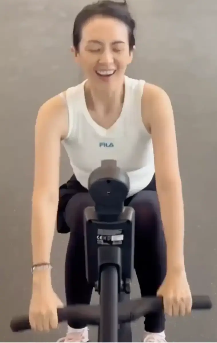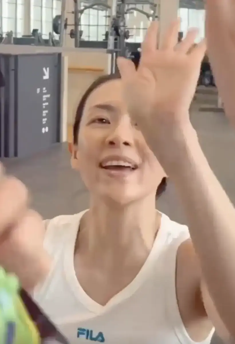 章子怡曬素顏健身的視頻 向鏡頭飛吻打招呼