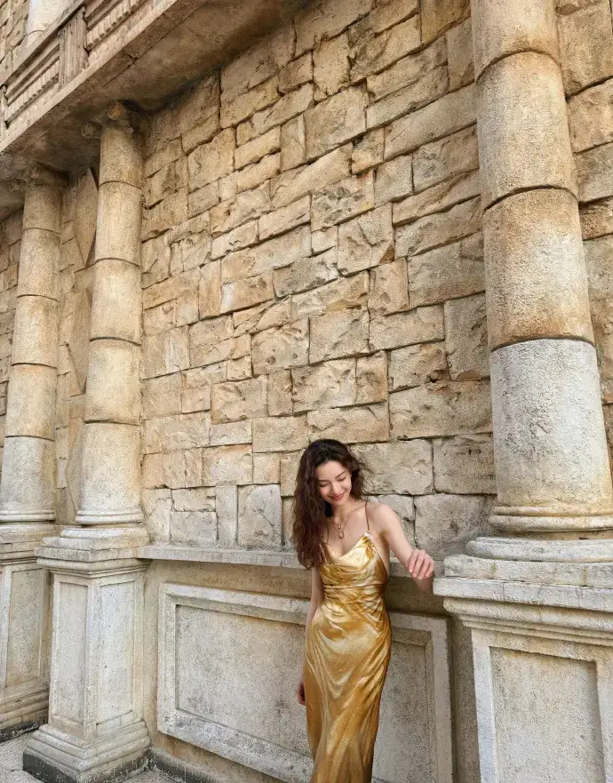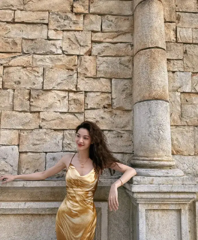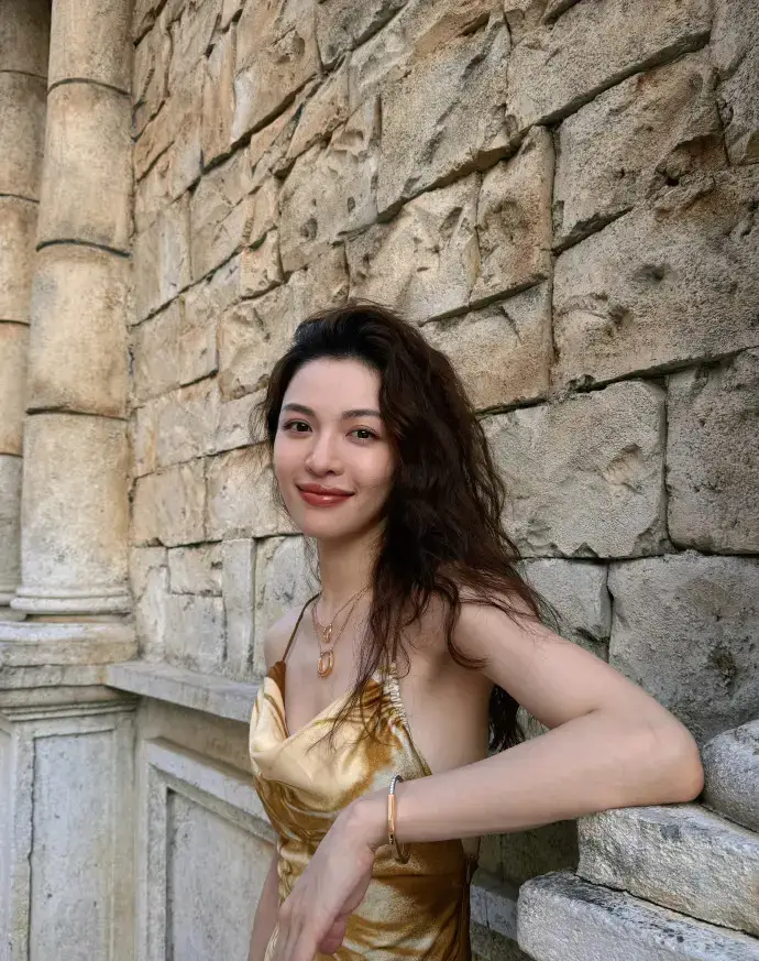 鐘楚曦穿金色吊帶裙漫步澳門 夕陽(yáng)下微笑氣質(zhì)卓越