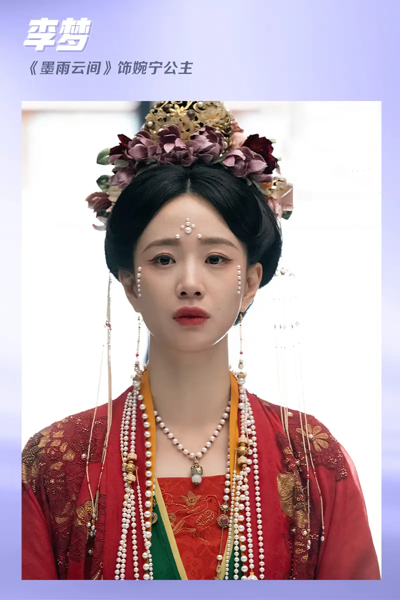 李夢在《墨雨云間》中飾演長公主婉寧,紅色系的華服顯得格外雍容華貴,與皇家身份非常相配!