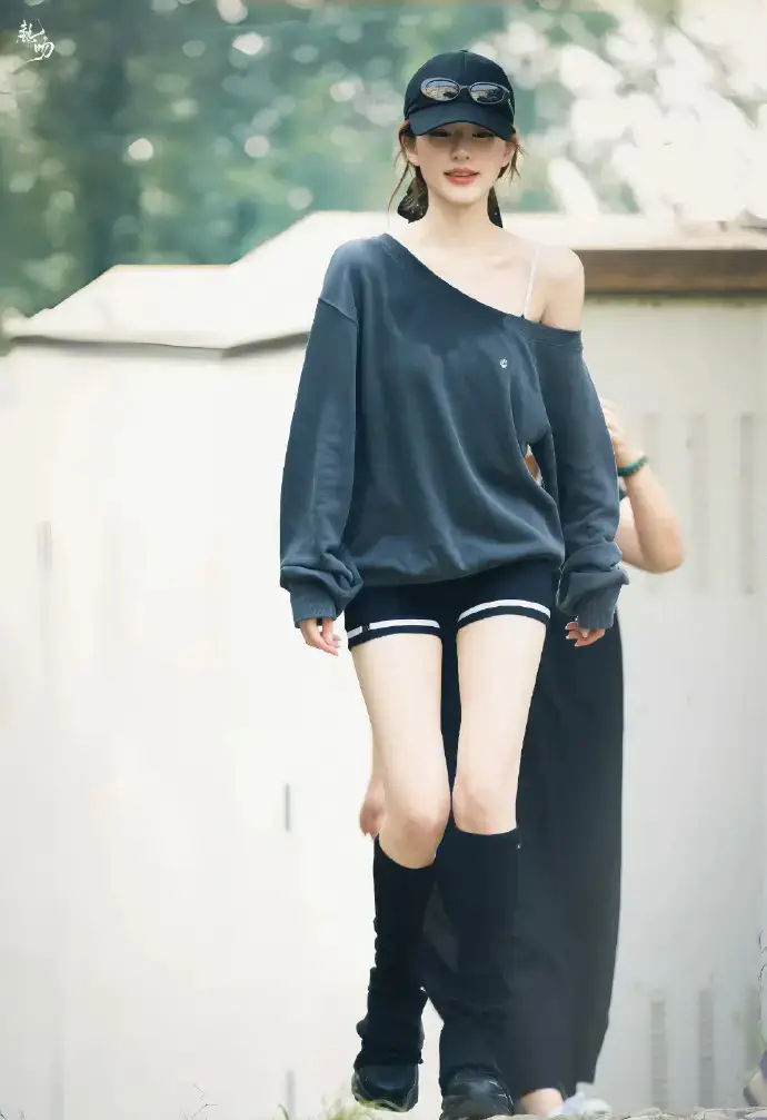 趙露思露肩黑衛(wèi)衣純欲感十足 超短褲秀白嫩長腿
