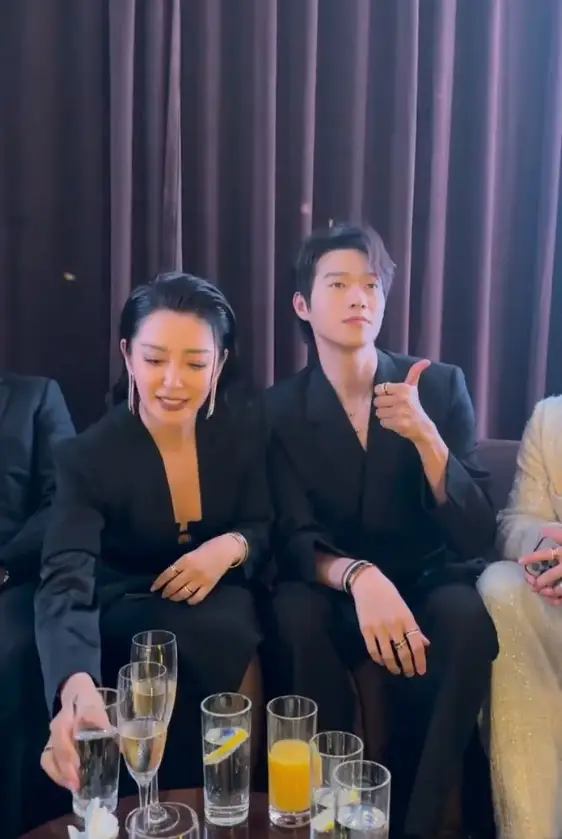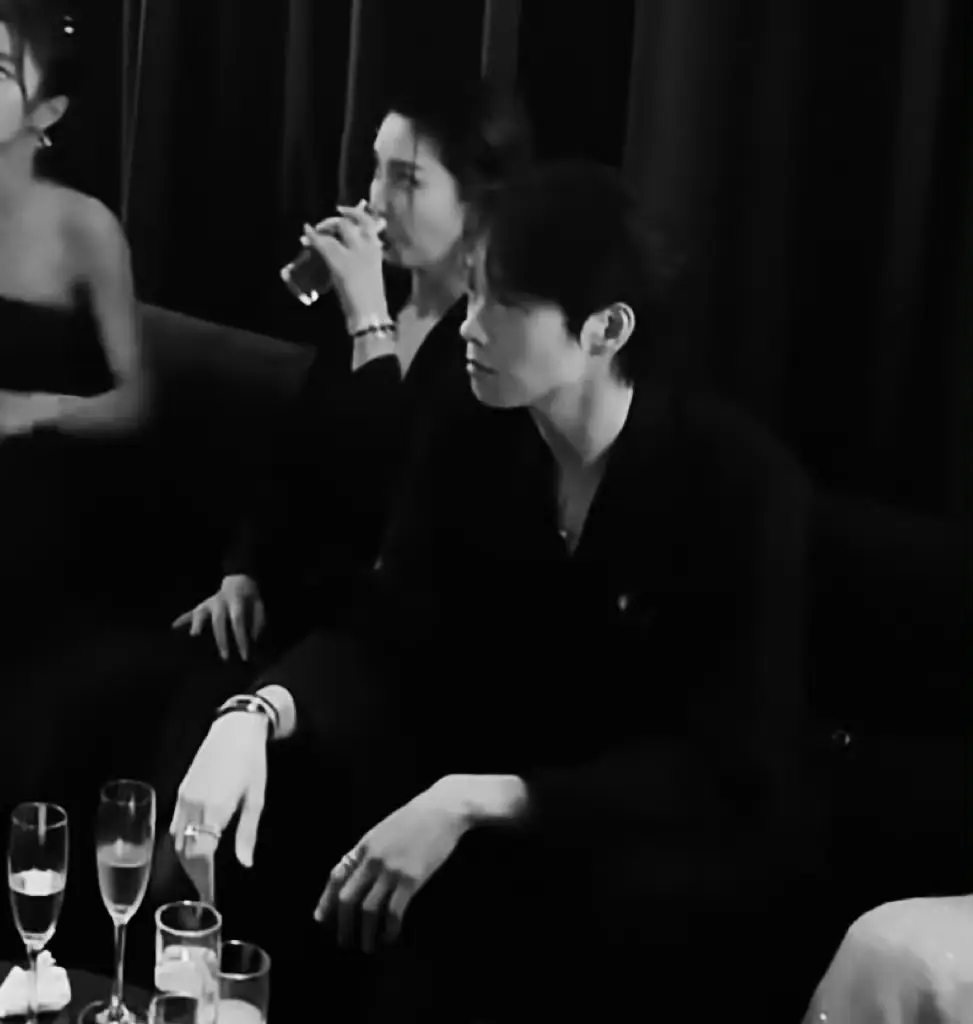 李冰冰與魏大勛手拿香檳,仿佛豪門姐弟現(xiàn)身名利場正在與他人社交。