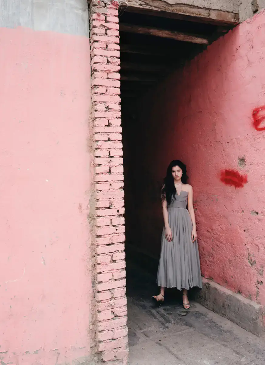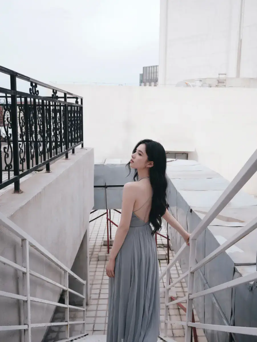 張婧儀灰色紗裙造型飄渺靈巧 漫步小巷似快樂(lè)精靈