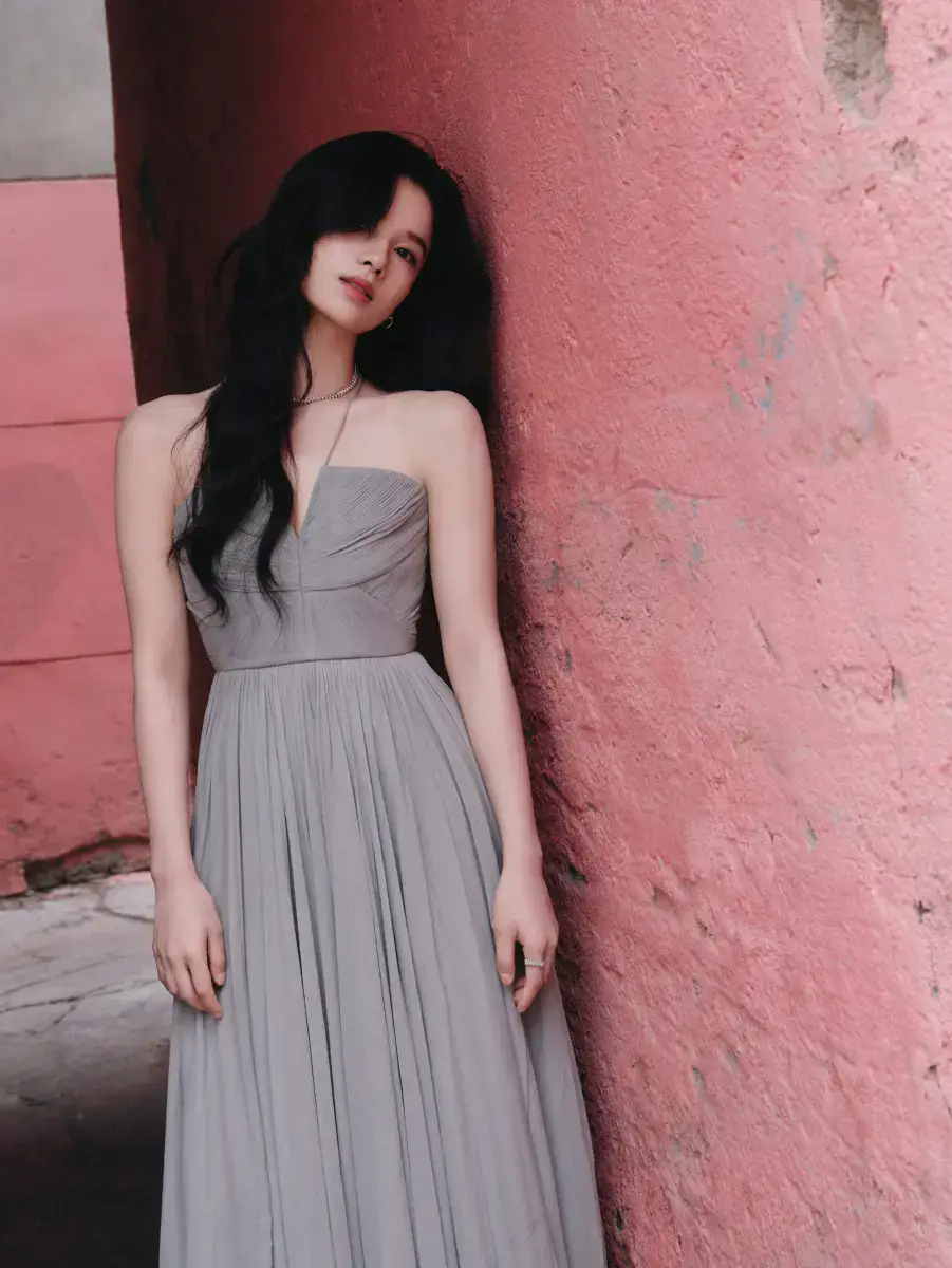 7月28日,張婧儀(明星經(jīng)紀(jì)公司)工作室曬出了一組她的最新活動(dòng)造型圖。張婧儀身穿灰色抹胸紗裙,靠在墻邊。