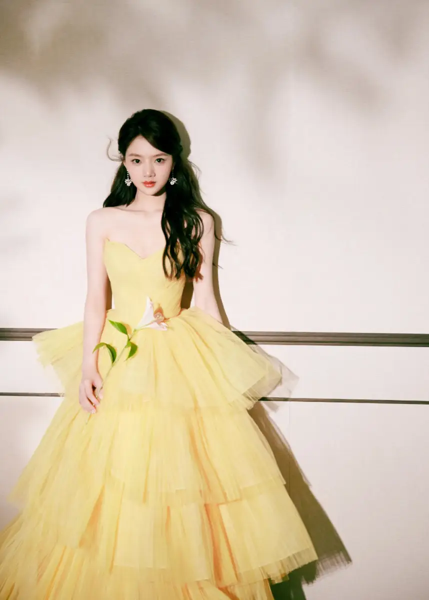 任敏穿上淡黃禮裙明媚動(dòng)人。