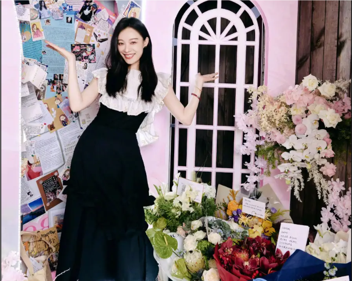 倪妮曬36歲慶生照 打卡生日花墻笑眼彎彎