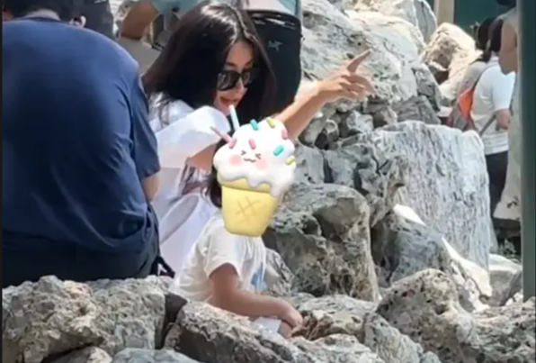 7月7日,有網(wǎng)友在北海公園偶遇了朱珠一家。