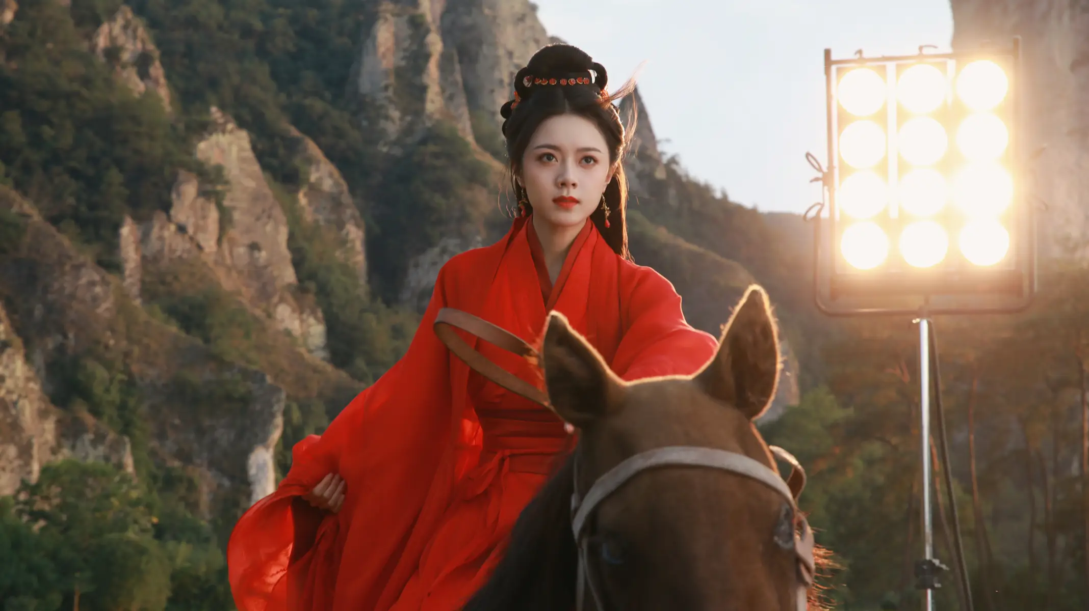 趙今麥一身紅衣古裝騎戰(zhàn)馬 美麗瀟灑盡顯俠客氣質(zhì)