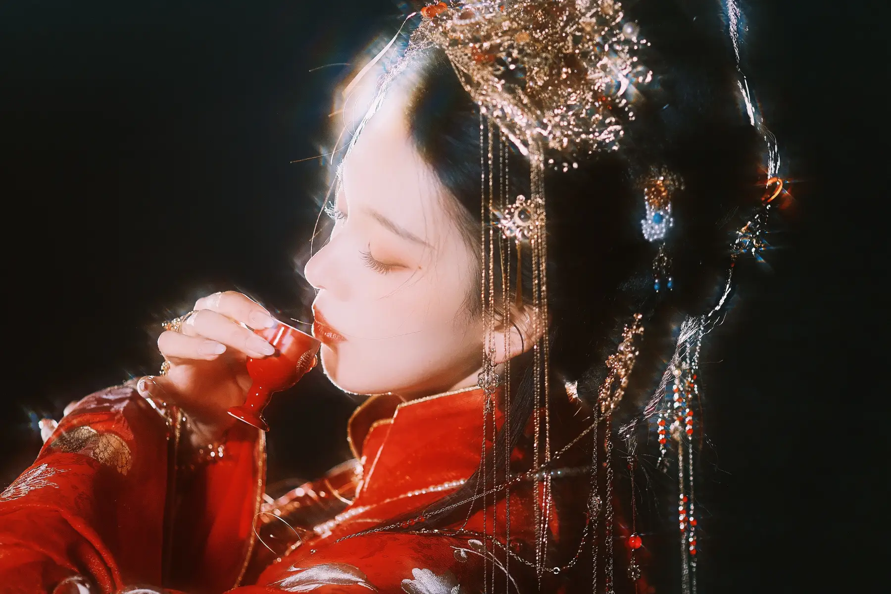 美艷撩人!陳瑤穿古風(fēng)婚服看得讓人臉紅心跳