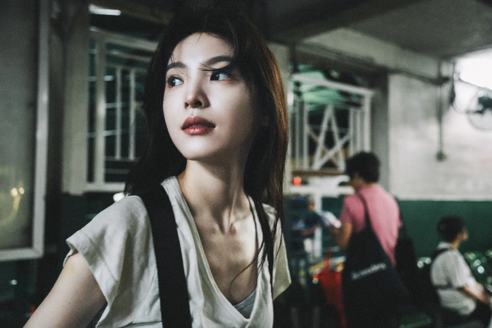 林允一抹紅唇性感撩人 目光含情如花綻放