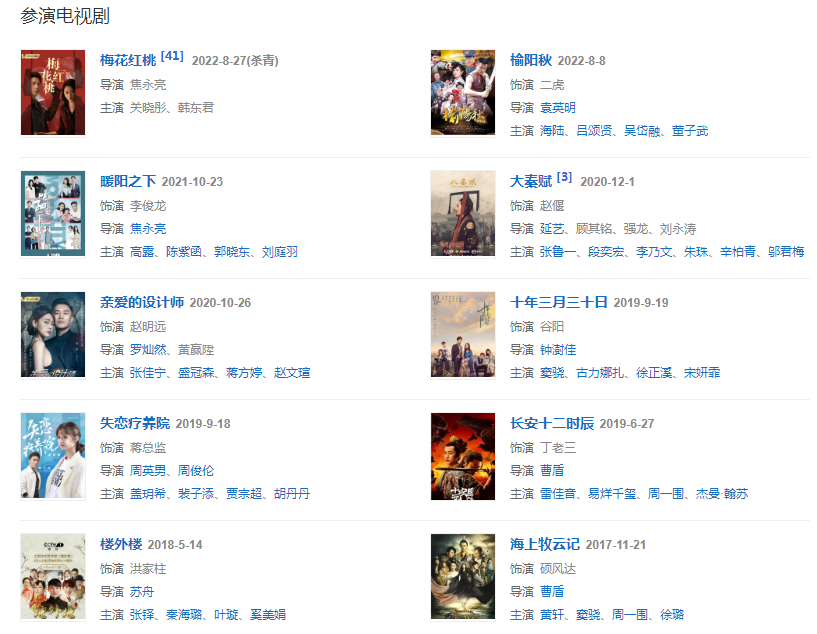 代表作品:戰(zhàn)旗、因?yàn)閻矍橛卸嗝?、鳳凰牡丹、親愛的回家、愛在蒼茫大地、二胎時(shí)代