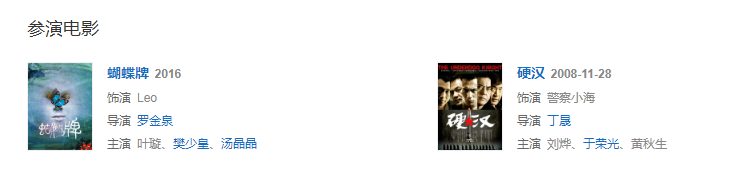 2008年,參演電影《硬漢》飾演小海;2011年,出演電視劇《烽火兒女情》,飾演蘇志煒。
