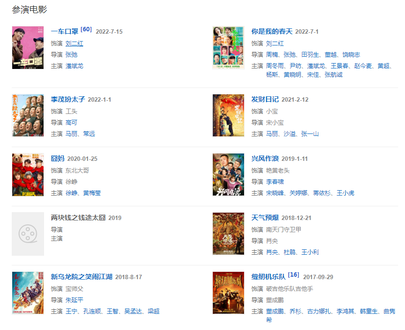 2022年1月,參加2022年北京廣播電視臺(tái)春節(jié)聯(lián)歡晚會(huì)錄制。 2月1日,參加2022年北京廣播電視臺(tái)春節(jié)聯(lián)歡晚會(huì),參演小品《這世界那么多的人》;1月30日,參加《2022年遼寧衛(wèi)視春節(jié)聯(lián)歡晚會(huì)》;2月1日,參加《2022年?yáng)|方衛(wèi)視春節(jié)聯(lián)歡晚會(huì)》;同年,主演抗疫電影《你是我的春天》。