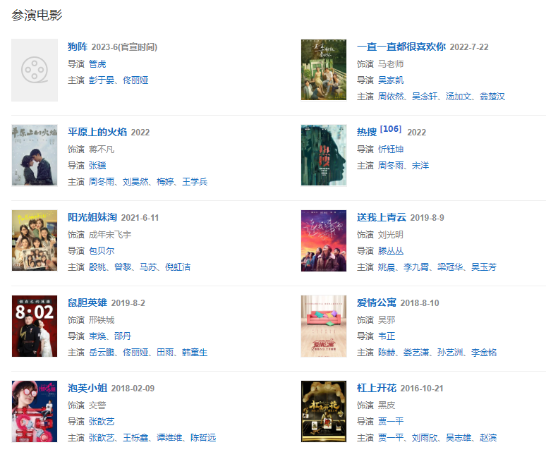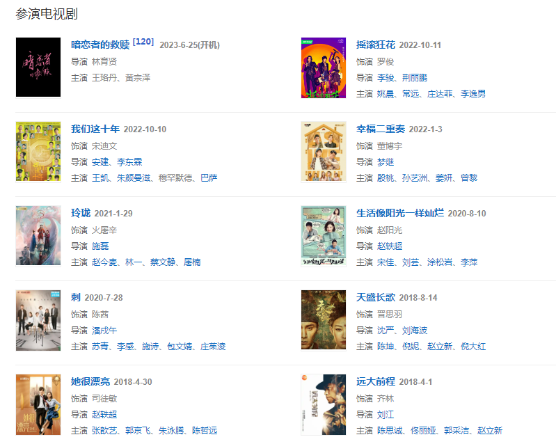 代表作品:咱們相愛吧、秀麗江山之長歌行、上書房、射雕英雄傳、步步驚心、平凡的世界