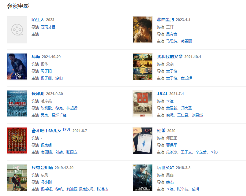 代表作品:芳華、推拿、妖貓傳、非凡任務(wù)、只有蕓知道、黃金時(shí)代、紅高粱、羋月傳、山海情、親愛的翻譯官、風(fēng)起洛陽、瞄準(zhǔn)