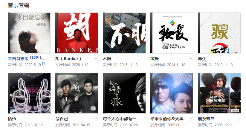2014年發(fā)行專輯《敢愛》,2015年發(fā)行專輯《不服》,共發(fā)行了16張音樂專輯(其中原創(chuàng)專輯11張),唱片累計銷量超過1200萬張。