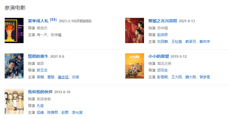 2006年,因參演首部電視劇《闖關(guān)東》而正式進入影視圈。