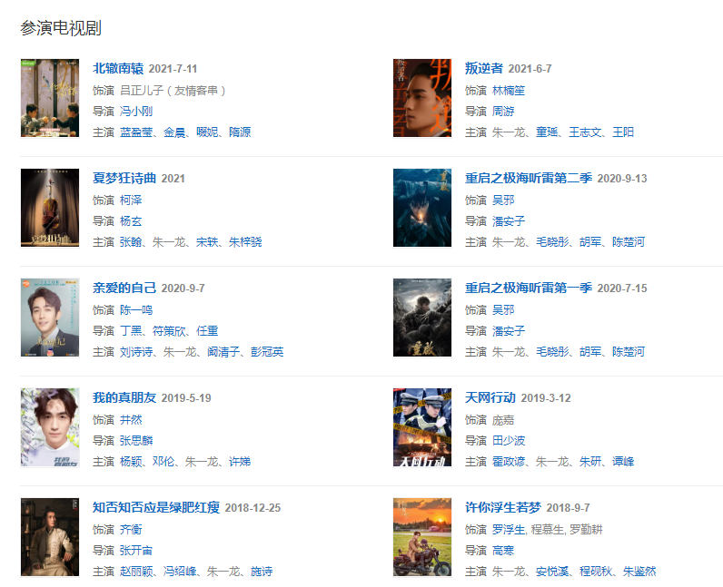 代表作品:人生大事、峰爆、叛逆者、重啟之極海聽雷、知否知否應(yīng)是綠肥紅瘦、鎮(zhèn)魂、新邊城浪子、情定三生