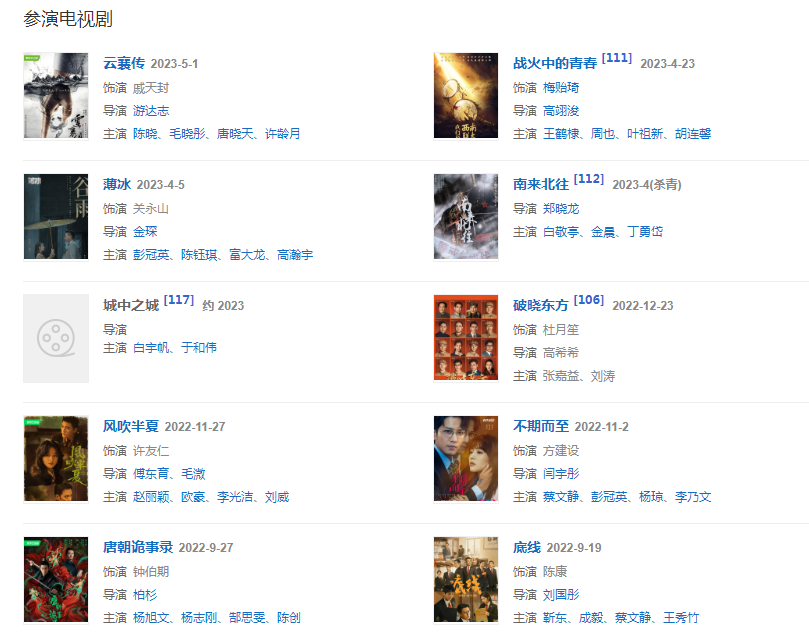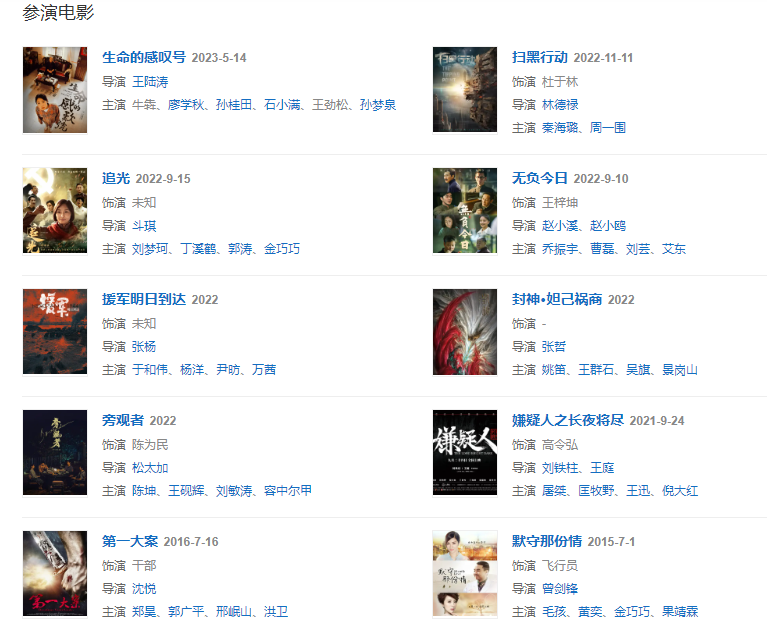 2021年,主演重大革命歷史題材電視劇《大決戰(zhàn)》 ;同年,擔任第八屆“文榮獎”評委會評委。