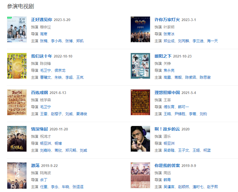 2016年參演電視劇《云巔之上》;主演楊亞洲導(dǎo)演的電視劇《嘿,孩子》和中國(guó)版《約會(huì)~戀愛究竟是什么呢~》。