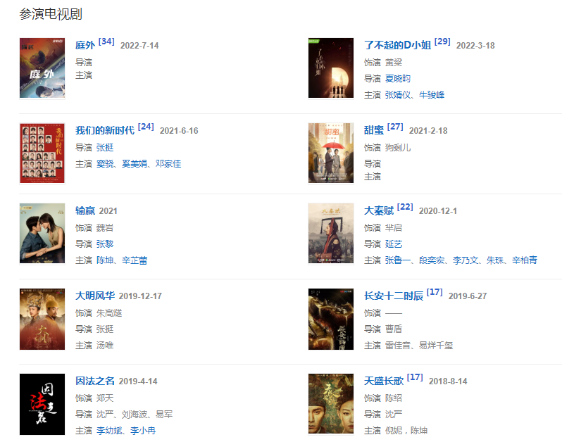 2021年2月18日,參演的都市情感劇《甜蜜》播出 ;6月16日,參演的電視劇《我們的新時(shí)代》播出。