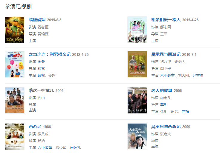 1986年,因在古裝神話劇《西游記》中飾演豬八戒而獲得關注并開始影視生涯。