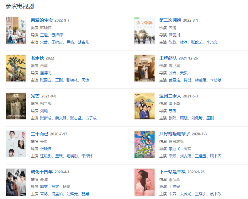 2022年7月9日,主演的電視劇《老家伙》殺青 ;8月1日,主演的都市情感群像劇《第二次擁抱》播出。