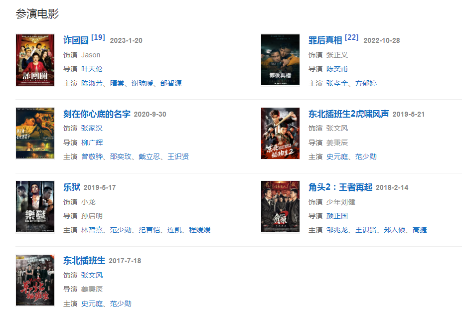 2019年,主演的青春校園喜劇片《東北插班生2虎嘯風聲》上線。