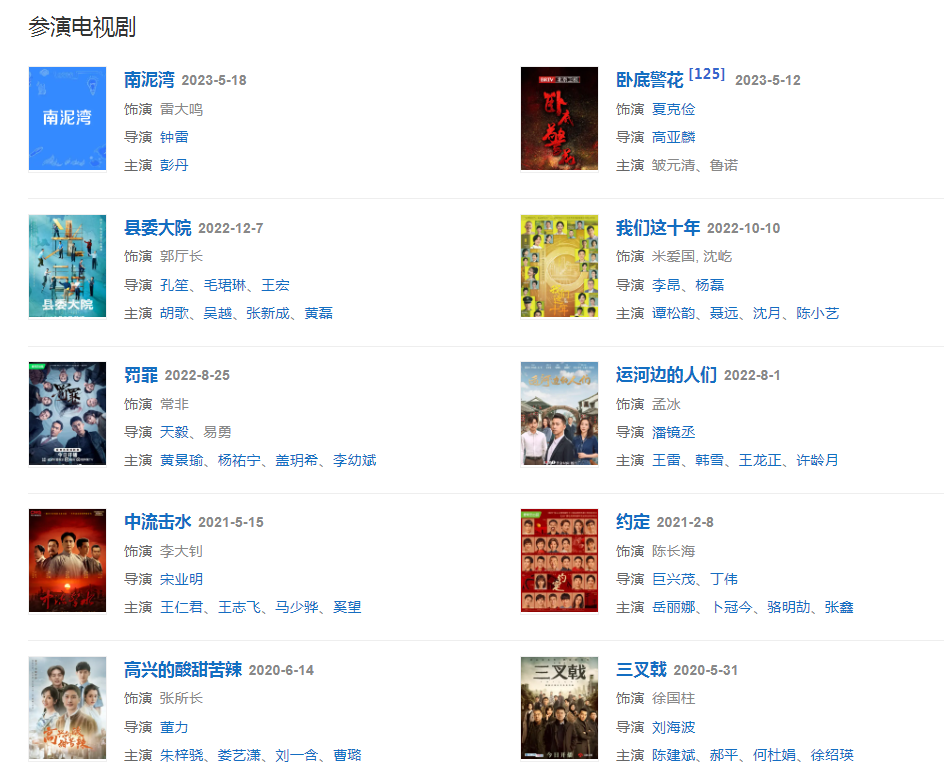 代表作品:警壇風(fēng)云、重案六組、重慶諜戰(zhàn)、諜變1939、霍元甲、北平無戰(zhàn)事、彭德懷元帥