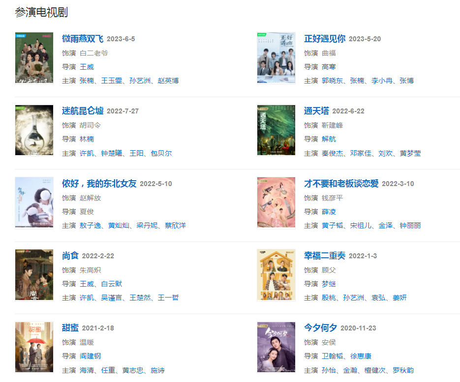 2021年2月18日,參演的都市情感劇《甜蜜》播出;5月28日,特別出演的奇幻愛情電影《奇花記》在騰訊視頻全網(wǎng)獨(dú)播;9月17日,主演的災(zāi)難電影《峰爆》上映;參演電視劇《小幸?!贰?/span>