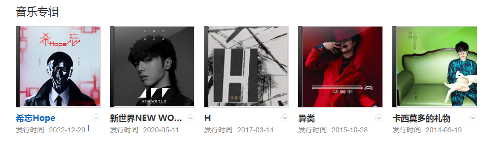 2017314日,發(fā)行第三張專輯《H》;同年6月,加盟《明日之子》擔(dān)任星推官。