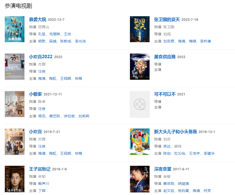 2016年主演電視劇《深夜食堂》,同年主演電視劇《小別離》。