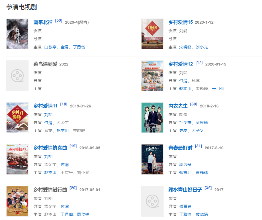 2006年參加《鄉(xiāng)村愛情》的拍攝飾演劉能。