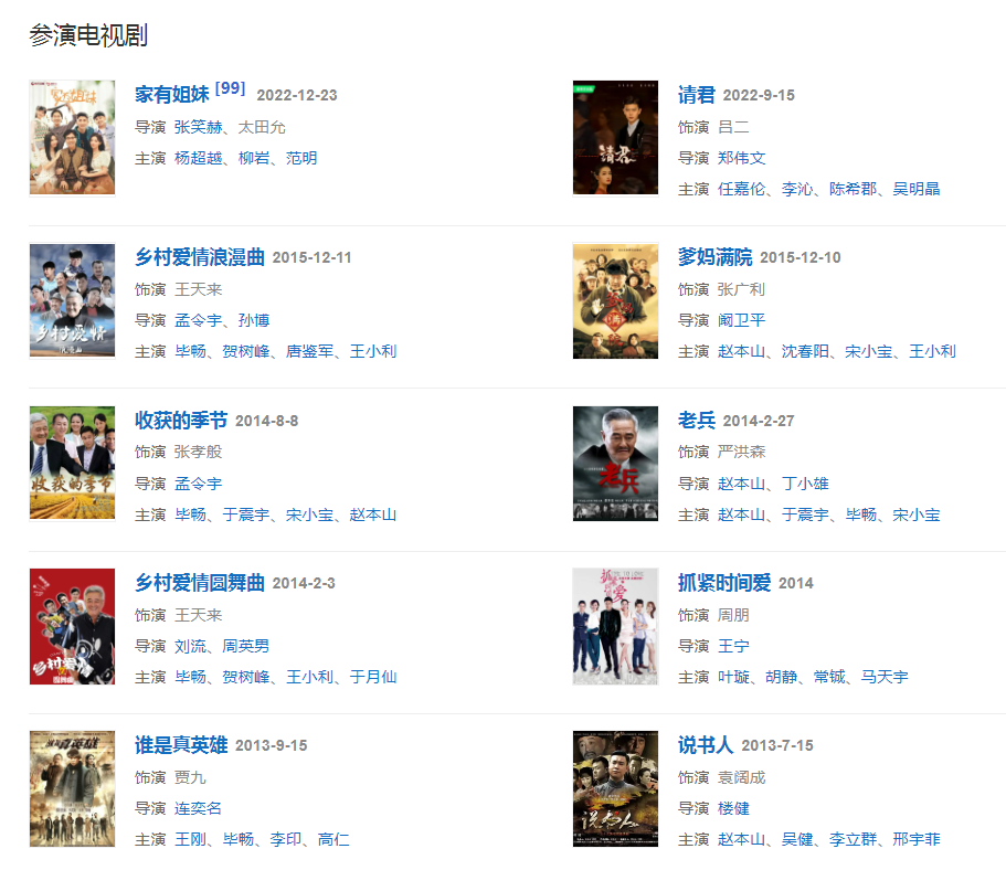 2012年其主演電視劇《后廚》,2014年在北京衛(wèi)視春晚表演小品《真的想回家》。