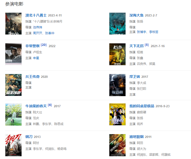 2016年9月,主演由王利興執(zhí)導(dǎo)的女性勵(lì)志諜戰(zhàn)劇《灰雁》 ;11月,主演由張巳陽、廖希執(zhí)導(dǎo)的動(dòng)作抗戰(zhàn)題材電影《捍衛(wèi)者》。