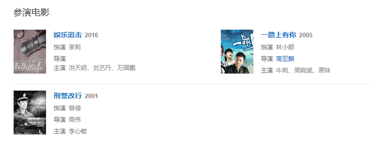 2005年,參演高亞麟執(zhí)導的喜劇電影《一路上有你》,從而開始演藝事業(yè)。