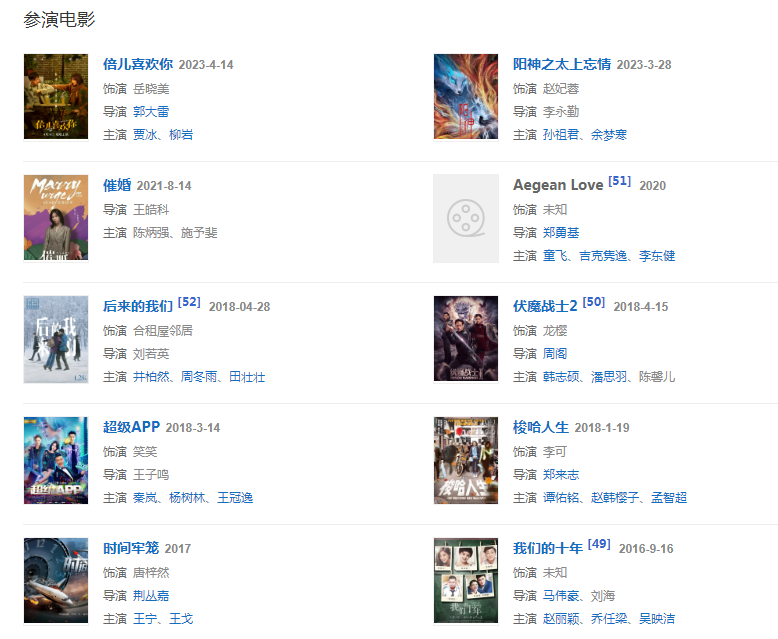 2021814日,主演的電影《催婚》在全國上映。11月,出演的電視劇《雪鷹領(lǐng)主》,在劇中飾演擁有“動(dòng)漫第一女戰(zhàn)神”的稱號,不僅是一位美麗與颯氣并存的血刃酒館老板娘葉玫。