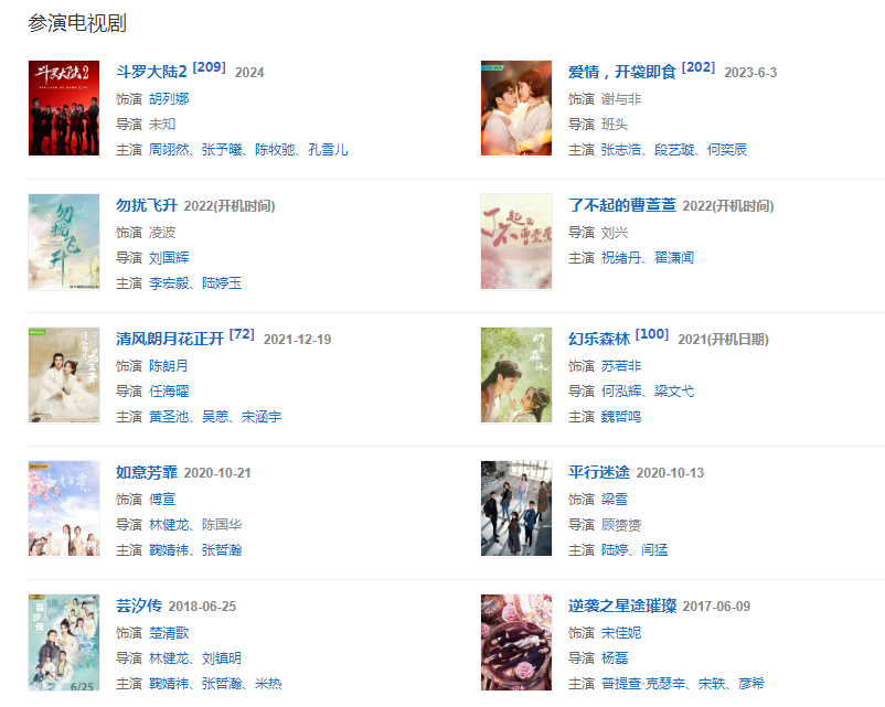 代表作品:蕓汐傳、山城、skin、如意芳霏、清風(fēng)朗月花正開、平行迷途