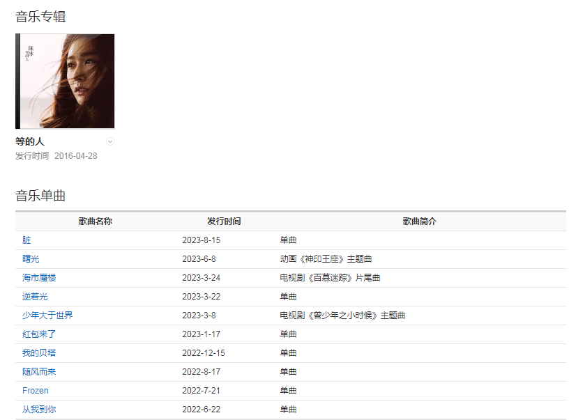 2022125日,與來自《中國好聲音》的黃霄雲(yún)、李琦、張磊等20位歌手獻唱歌曲《夢想開懷》;217日,參加咪咕音樂《“星”動冰雪》第10期,和大家一起觀看冰雪運動會,解說冰雪新賽點;222日,為咪咕《星動冰雪》冬奧微綜藝,收官獻唱《星空下》圓夢冰雪夢想;330日,與吉克雋逸、吳莫愁、金志文等數(shù)十位好聲音學員演唱抗疫歌曲《讓世界再明亮》;520日,以飛行合伙人身份加盟浙江衛(wèi)視音樂節(jié)目《天賜的聲音第三季》,搭檔海來阿木演唱歌曲《三生三幸》。