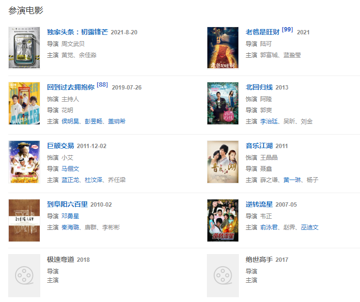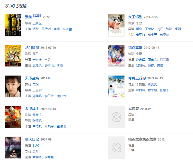 代表作品:High歌、癢、風(fēng)月、禁區(qū)、忘塵、特別、驚鴻一面、南屏晚鐘、桃花緣記、來日方長、半生緣、永遠(yuǎn)的微笑