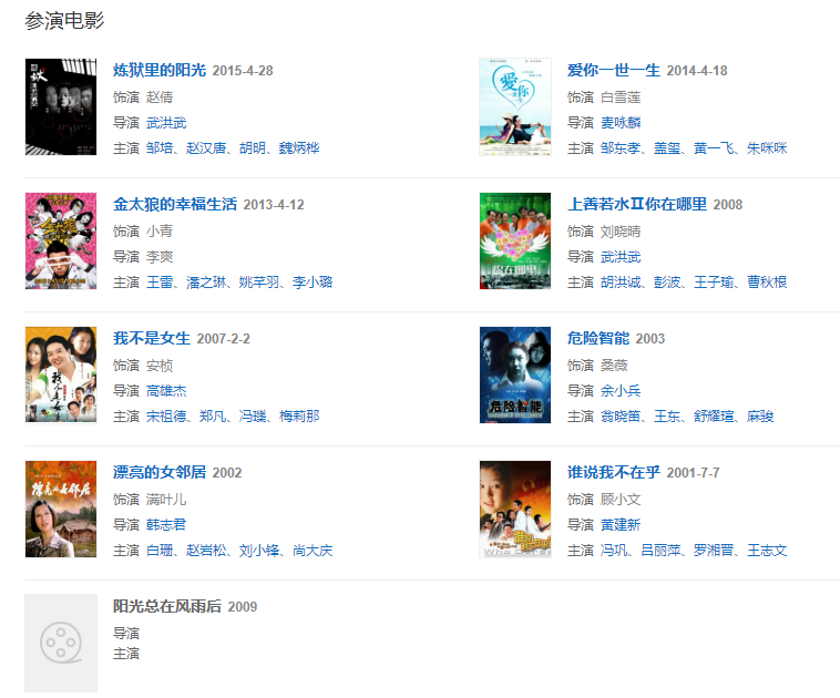 2001年,憑借《誰說我不在乎》獲得第21屆金雞獎最佳女配角提名。