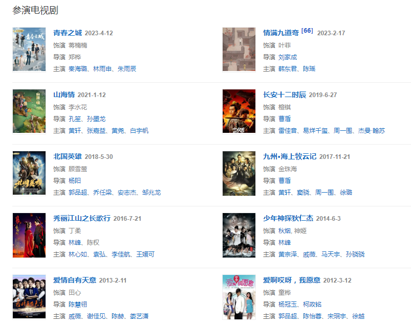 代表作品:山海情、長安十二時辰、緝槍、甄嬛傳