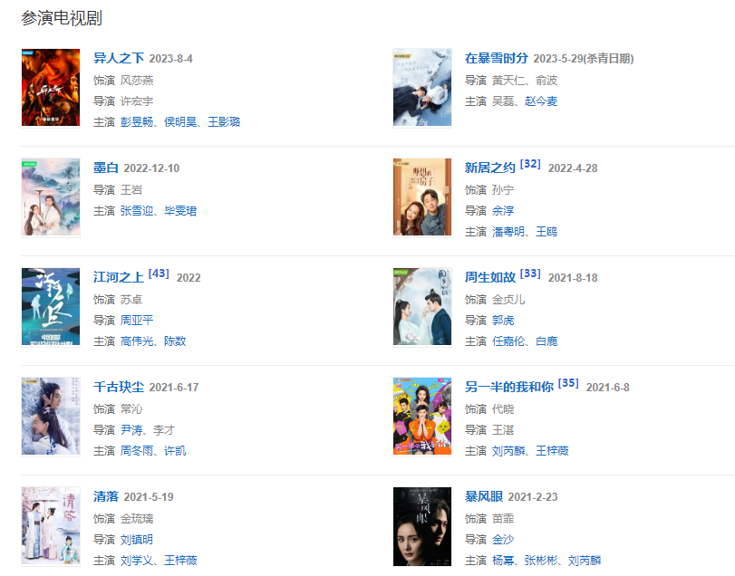 2021年2月23日,與楊冪、張彬彬等合作出演的都市反諜劇《暴風眼》播出 ;