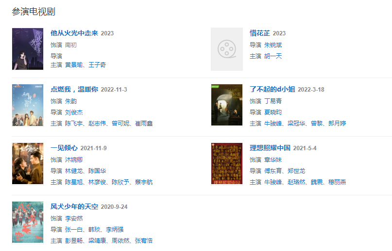代表作品:風犬少年的天空、一見傾心、我要我們在一起、關(guān)于我媽的一切、點燃我,溫暖你