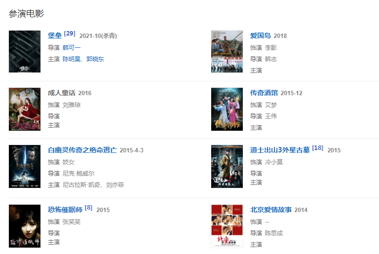 代表作品:深海利劍、萬水千山風(fēng)雨情、別讓我看見、北京愛情故事、極速救援