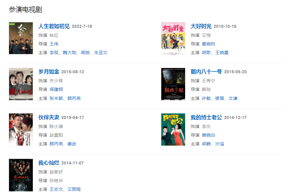 代表作品:踏血尋梅、脫皮爸爸、我心燦爛、我的博士老公、人生若如初見、風(fēng)再起時