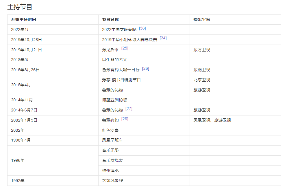 2016年4月,擔(dān)任北京衛(wèi)視讀書日特別節(jié)目《豫薦·讀書日特別節(jié)目》的主持人。