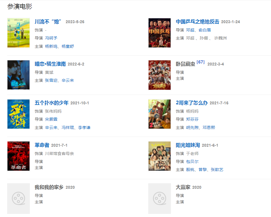 2006年與俞白眉合作了《房前屋后》、《無(wú)敵三腳貓》兩部作品。