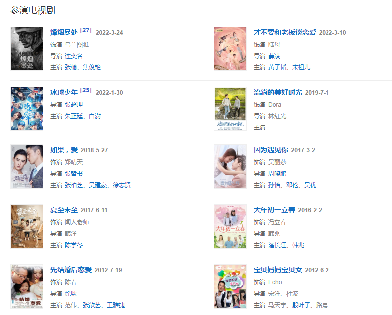 2022年1月30日,參演的體育競(jìng)技劇《冰球少年》播出 ;3月10日,友情主演的都市奇幻愛情劇《才不要和老板談戀愛》播出;3月24日,參演抗戰(zhàn)劇《烽煙盡處》,飾演男主的母親烏蘭圖雅。